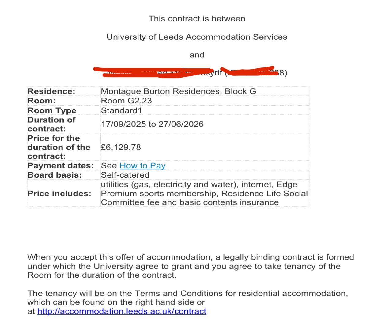 I’m looking for someone to take over my University of Leeds accommodation contract at Montague Burton Residences (Block G, Room G2.23) starting September/October 2025 for the full academic year (2025/26). This is a university-managed accommodation, and I’m only able to release my contract if I find a suitable University of Leeds student replacement who is not already in Uni accommodation.